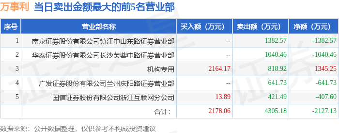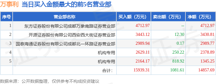 12月31日万事利(301066)龙虎榜数据:机构净买入3724.13万元
