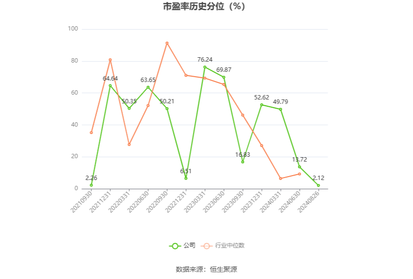 市盈率为负时,不显示当期分位数,会导致折线图中断。