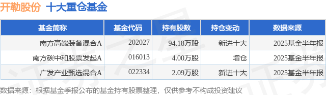 根据2025基金半年报公募基金重仓股数据,重仓该股的公募基金共3家,其中持有数量最多的公募基金为南方基金的南方高端装备混合A。南方高端装备混合A目前规模为5.73亿元,最新净值3.4779(9月29日),较上一交易日上涨3.08%,近一年上涨89.06%。该公募基金现任基金经理为张磊。张磊在任的基金产品包括:南方碳中和股票发起A,管理时间为2022年10月25日至今,期间收益率为30.64%;南方新材料股票发起A,管理时间为2023年3月21日至今,期间收益率为17.93%。