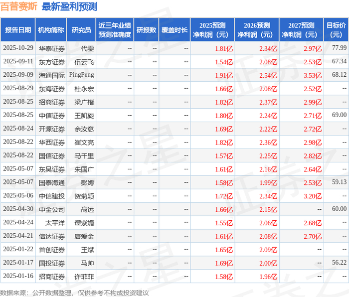 以下是详细的盈利预测信息: