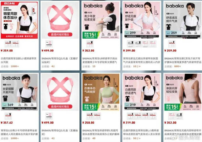 在淘宝平台,背背佳产品价格从100多元-499元不等,“白鹿同款”售价约219元的产品销量较高,达到50万+。