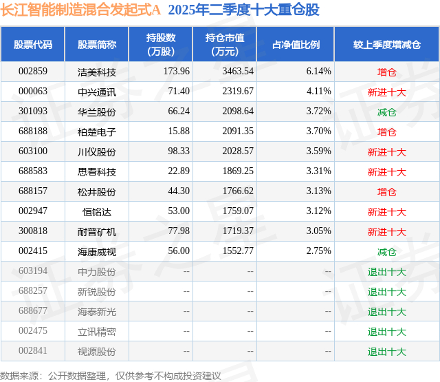 长江智能制造混合发起式A的前十大重仓股如下: