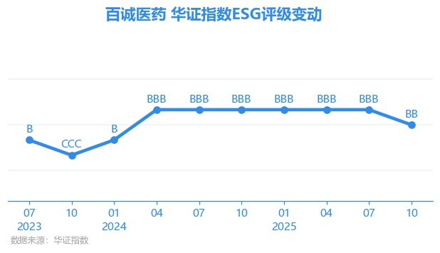 日前,华证指数公布了新一期(2025年10月31日)的ESG评级结果,百诚医药(301096.SZ)获得BB评级(华证指数评级为C起至AAA九档,C为最低档,AAA为其最高一级评级/AA为其第二档),上一期(2025年7月31日)ESG评级为BBB。本期ESG评级在33家生命科学工具和服务行业A股上市公司中排名第8(上一期排名第6)。