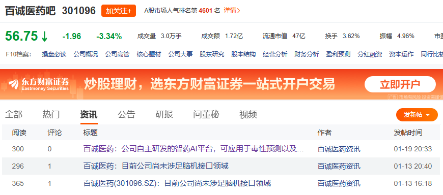更让人不解的是,在脑机接口概念爆火的当下,百诚医药称“目前公司尚未涉足脑机接口领域”,并将重心放在创新药研发和AI制药平台上。