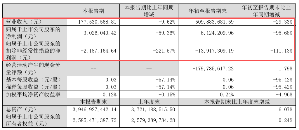 2025年10月24日,百诚医药发布2025年第三季度报告。前三季度,公司营收为5.10亿元,同比下降29.33%;归母净利润为612.42万元,同比下降95.68%;扣非净利润为-1391.73万元,同比下降111.13%。持续营收利润双降。