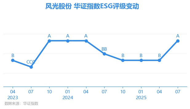 日前,华证指数公布了新一期(2025年7月31日)的ESG评级结果,风光股份(301100.SZ)获得A评级(华证指数评级为C起至AAA九档,C为最低档,AAA为其最高一级评级/AA为其第二档),上一期(2025年4月30日)ESG评级为B。本期ESG评级在462家化学制品行业A股上市公司中排名第63(上一期排名第229)。