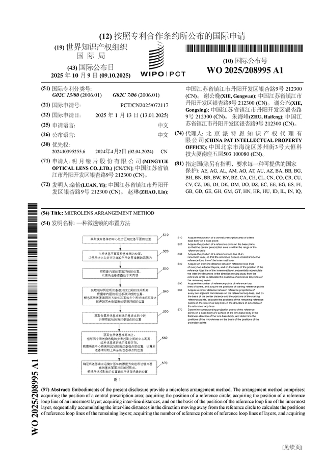 明月镜片公布国际专利申请:“一种微透镜的布置方法”