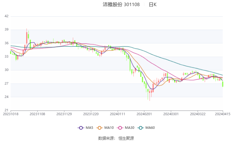 洁雅股份:2024年一季度净利同比预降57.07%-67.8%