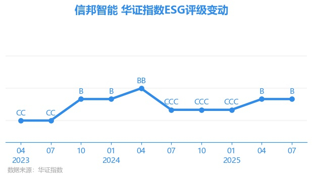 日前,华证指数公布了新一期(2025年7月31日)的ESG评级结果,信邦智能(301112.SZ)获得B评级(华证指数评级为C起至AAA九档,C为最低档,AAA为其最高一级评级/AA为其第二档),上一期(2025年4月30日)ESG评级为B。本期ESG评级在449家机械制造行业A股上市公司中排名第179(上一期排名第209)。