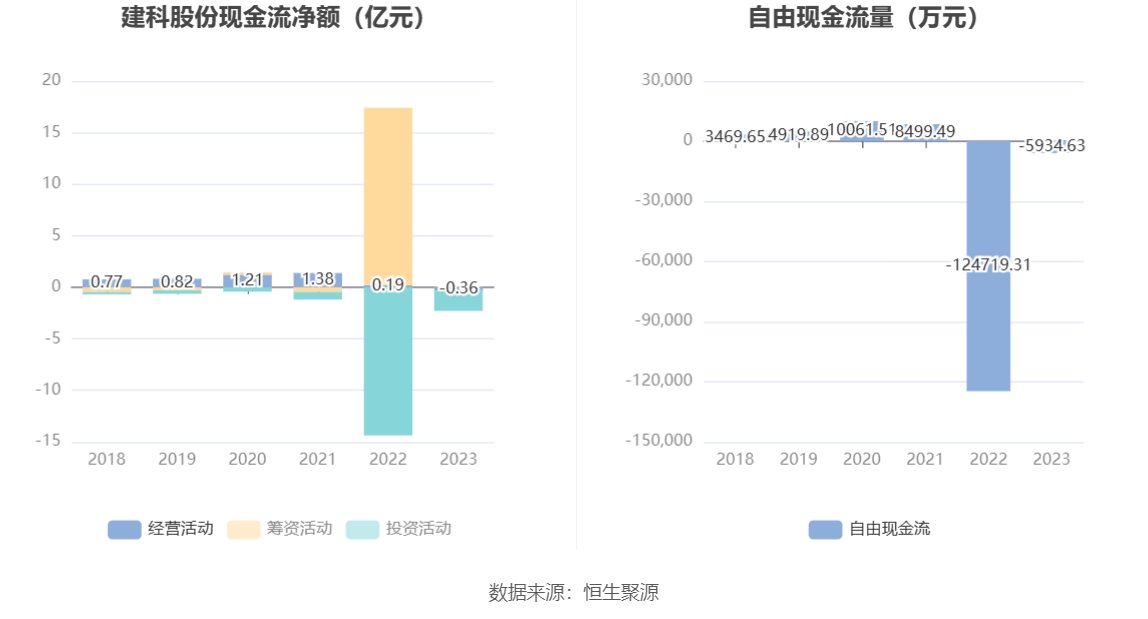 进一步统计发现,2023年公司自由现金流为-5934.63万元,上年同期为-124719.31万元。