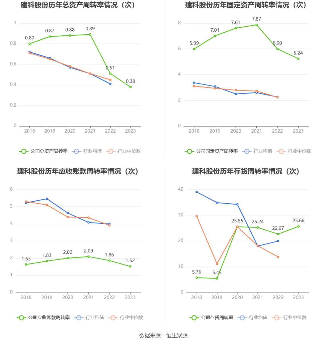 营运能力方面,2023年,公司公司总资产周转率为0.38次,上年同期为0.51次(2022年行业平均值为0.41次,公司位居同行业7/19);固定资产周转率为5.24次,上年同期为6.00次(2022年行业平均值为2.26次,公司位居同行业1/19);公司应收账款周转率、存货周转率分别为1.52次、25.66次。