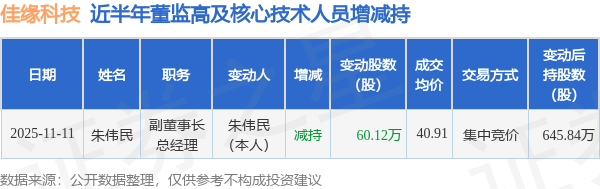 佳缘科技:11月11日高管朱伟民减持股份合计60.12万股