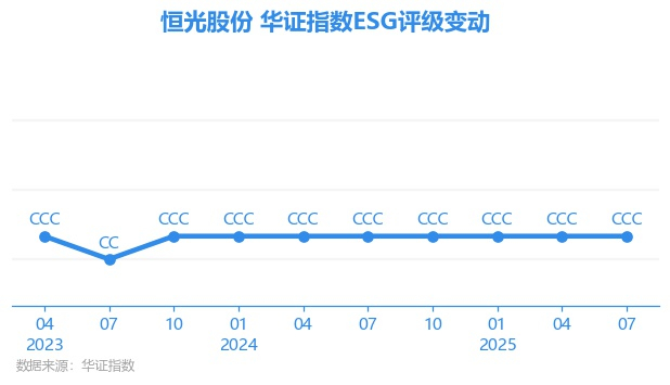 日前,华证指数公布了新一期(2025年7月31日)的ESG评级结果,恒光股份(301118.SZ)获得CCC评级(华证指数评级为C起至AAA九档,C为最低档,AAA为其最高一级评级/AA为其第二档),上一期(2025年4月30日)ESG评级为CCC。本期ESG评级在462家化学制品行业A股上市公司中排名第331(上一期排名第349)。