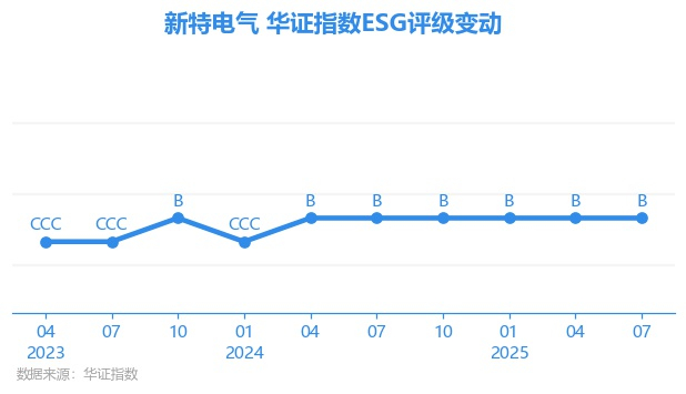 日前,华证指数公布了新一期(2025年7月31日)的ESG评级结果,新特电气(301120.SZ)获得B评级(华证指数评级为C起至AAA九档,C为最低档,AAA为其最高一级评级/AA为其第二档),上一期(2025年4月30日)ESG评级为B。本期ESG评级在321家电气设备行业A股上市公司中排名第208(上一期排名第252)。