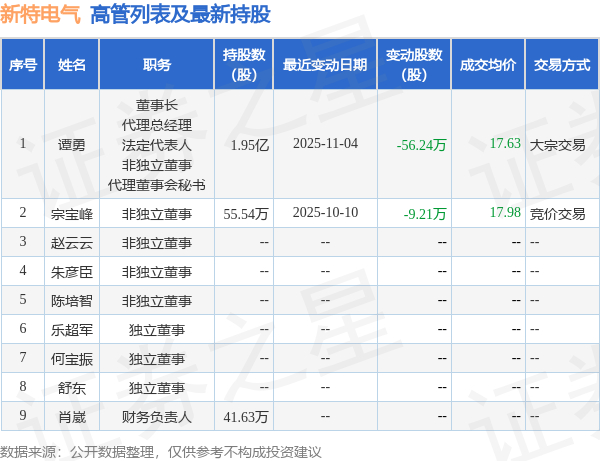 新特电气:11月4日高管谭勇减持股份合计56.24万股