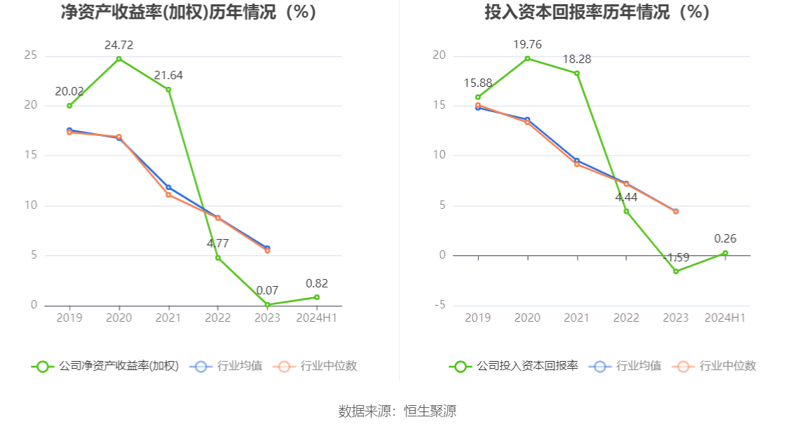 数据显示,2024年上半年公司加权平均净资产收益率为0.82%,较上年同期增长0.49个百分点;公司2024年上半年投入资本回报率为0.26%,较上年同期增长0.72个百分点。