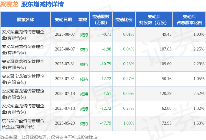 截至2025年11月13日收盘,聚赛龙(301131)报收于49.6元,上涨1.04%,换手率3.97%,成交量1.22万手,成交额6030.16万元。