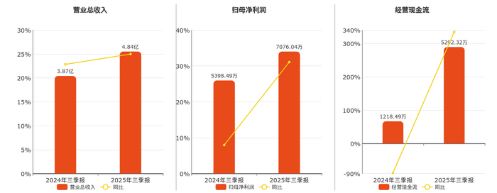 公司营业总收入为4.84亿元。归母净利润为7076.04万元。经营活动现金净流入为5292.32万元。