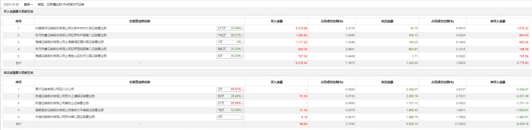 具体来看,知名游资现身龙虎榜,作手新一(国泰君安证券股份有限公司南京太平南路证券营业部)净卖出1626.97万元。此外,甬兴证券有限公司四川分公司、财通证券杭州上塘路证券营业部分别卖出2439.07万元、2262.79万元;中国银河证券北京中关村大街证券营业部、东方财富证券拉萨东环路第二证券营业部分别买入2018.94万元、1292.93万元。