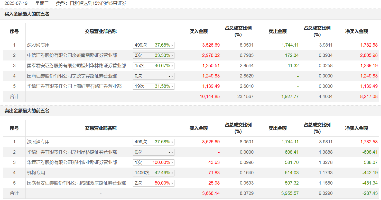 具体来看,机构买入71.83万元,卖出514.03万元,合计净卖出442.19万元。此外,知名游资现身龙虎榜,炒股养家(华鑫证券有限责任公司上海红宝石路证券营业部)净买入1139.49万元。此外,深股通专用、中信证券余姚南雷路证券营业部分别买入3526.69万元、2978.32万元;深股通专用、华鑫证券常州吊桥路证券营业部分别卖出1744.11万元、608.41万元。