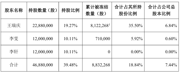 冻结事项目前未对王瑞庆作为控股股东的地位构成实质性影响,也未对公司的控股权、治理结构及经营管理产生重大不利影响。