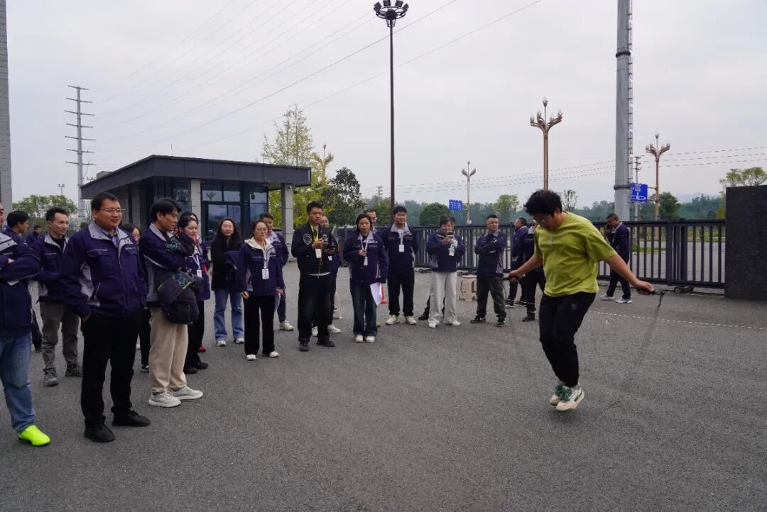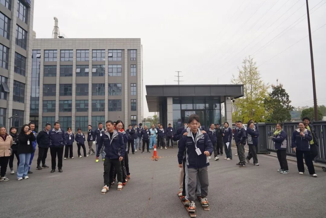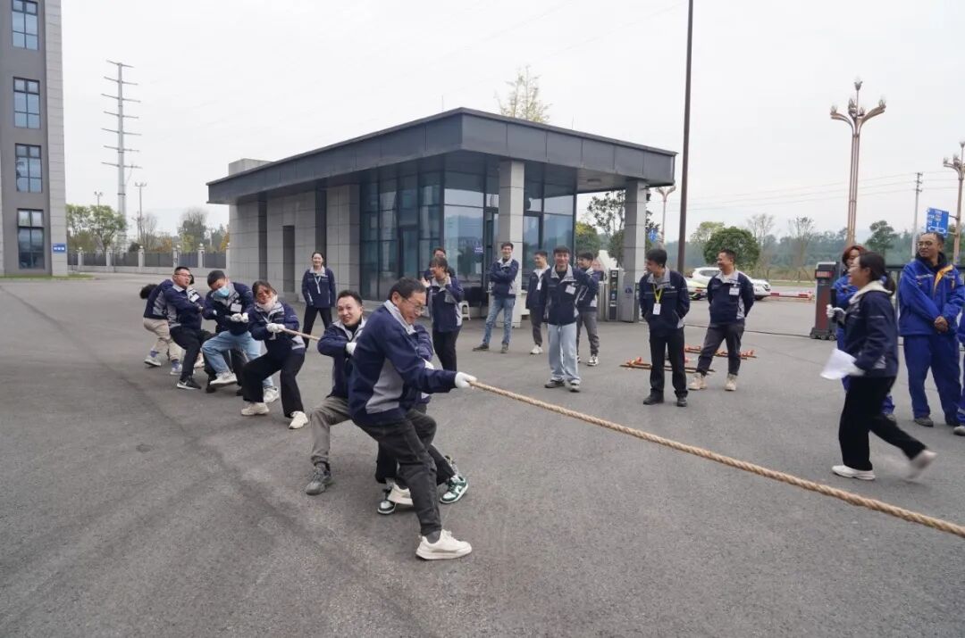 铁锂事业部尽显拼搏本色:拔河争霸赛中队员们咬牙发力,拉锯战牵动全场;跳绳绊绳后迅速调整刷新计数;“同舟共济”项目里队员肩搭肩稳步前行,互帮互助的身影恰似攻克技术难关的缩影。