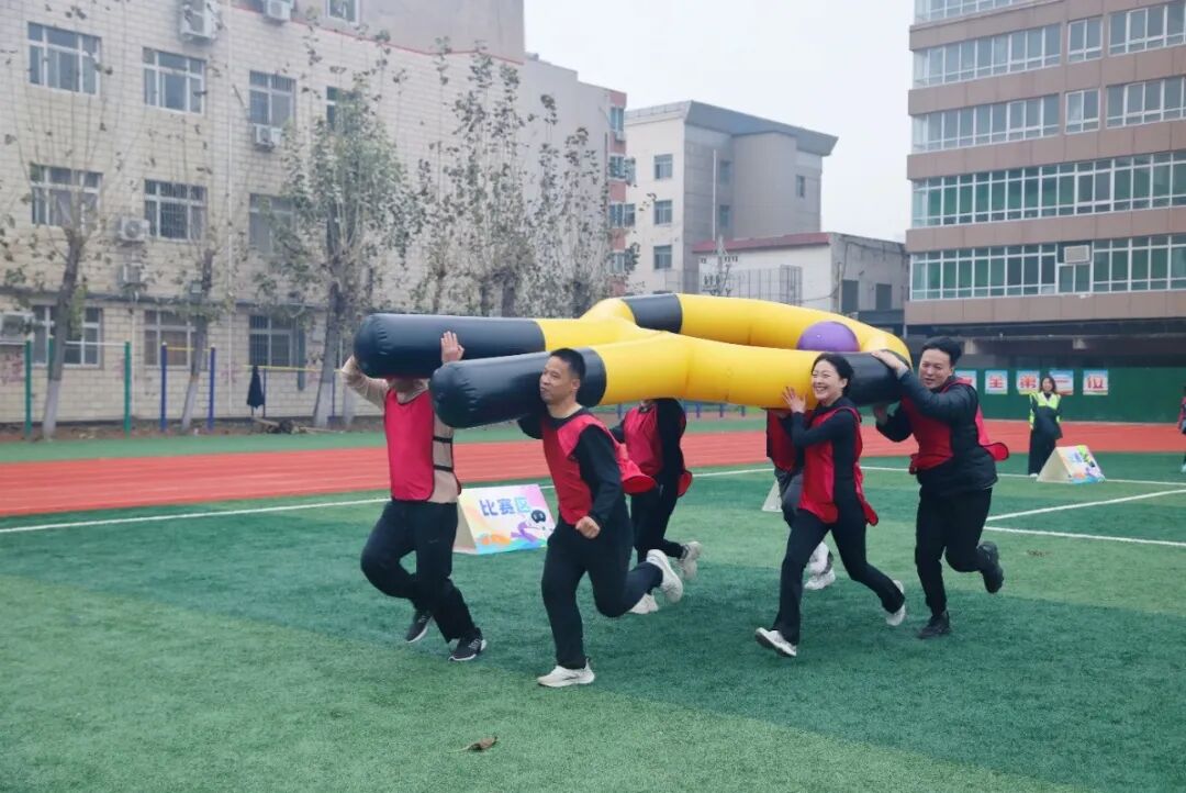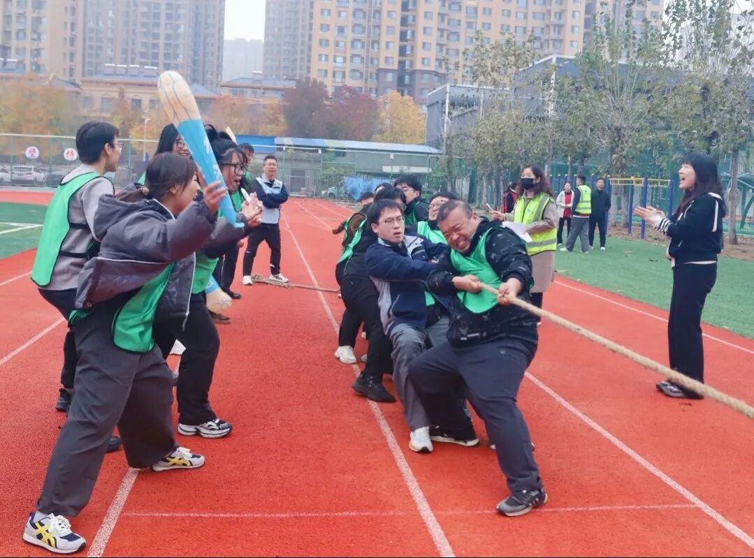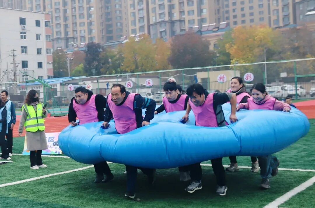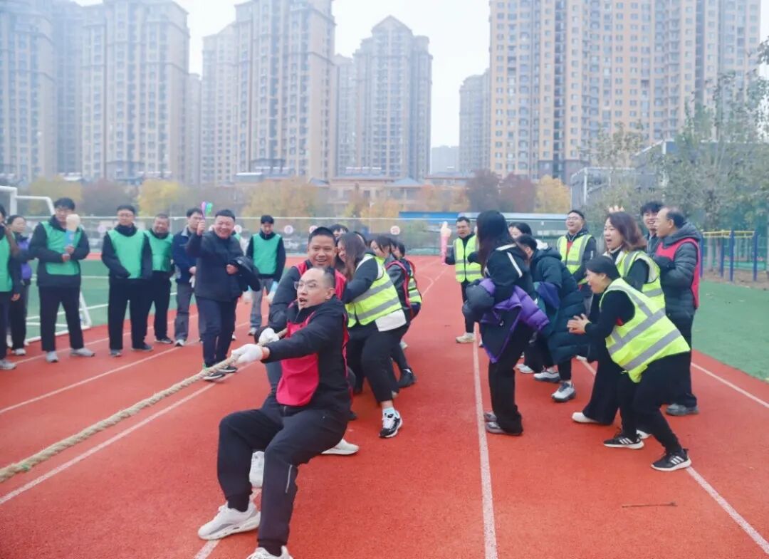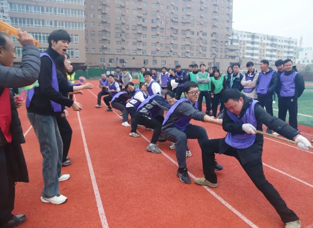 10*50米接力赛率先打响高潮,各队选手弓步起跑,交接棒时的精准对接、跑道内的加速超越,每一个细节都彰显着团队的默契。拔河争霸赛同样焦点十足,参赛队员们紧握绳索、扎稳马步,啦啦队的加油声浪震耳欲聋。趣味道具赛更是笑声不断,团队间的击掌接力与加油呐喊让竞技充满温情 。