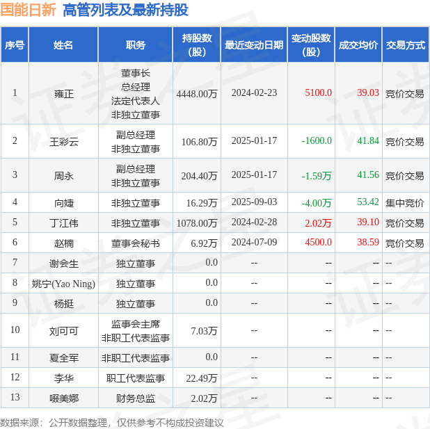 国能日新的高管列表及最新持股情况如下: