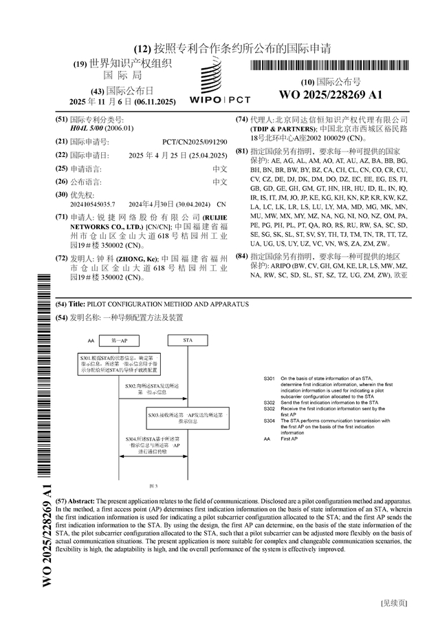 锐捷网络公布国际专利申请:“一种导频配置方法及装置”