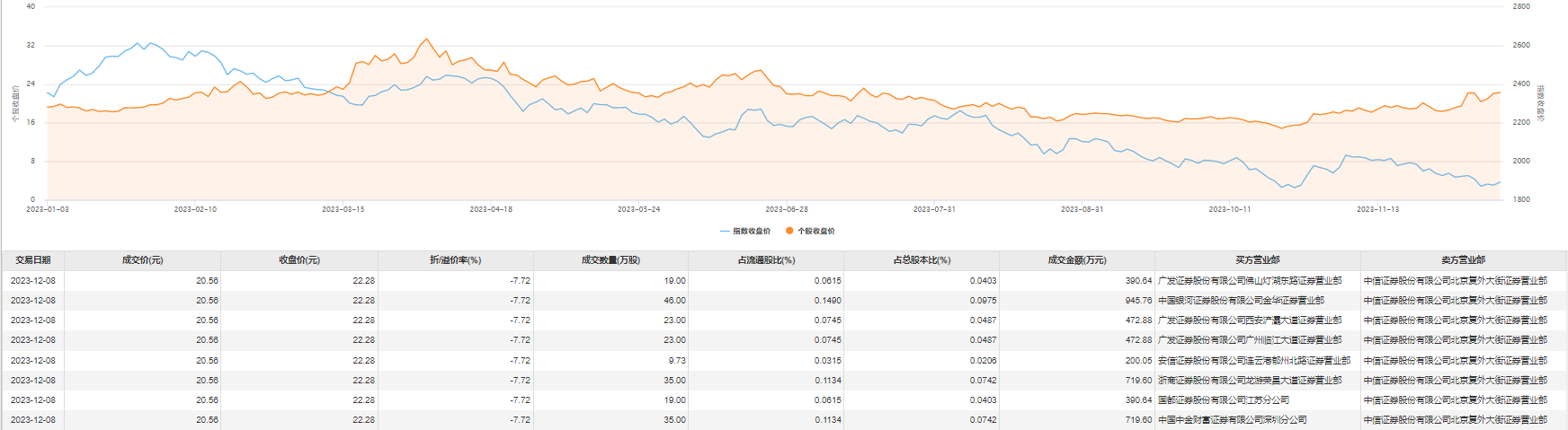 今日大宗交易成交209.73万股,成交额4312.05万元,占当日总成交额的4%,成交价20.56元,较市场收盘价折价7.72%。