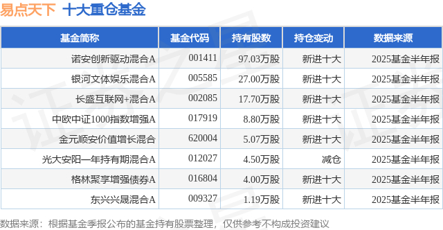 重仓易点天下的公募基金请见下表:
