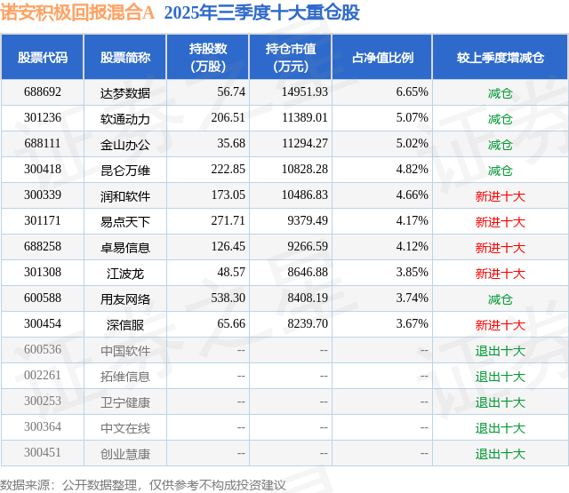 根据2025基金Q3季报公募基金重仓股数据,重仓该股的公募基金共8家,其中持有数量最多的公募基金为诺安基金的诺安积极回报混合A。诺安积极回报混合A目前规模为13.65亿元,最新净值2.051(11月14日),较上一交易日下跌2.33%,近一年下跌15.07%。该公募基金现任基金经理为刘慧影。刘慧影在任的基金产品包括:诺安优化配置混合A,管理时间为2022年8月3日至今,期间收益率为63.39%;诺安成长混合A,管理时间为2023年2月18日至今,期间收益率为36.62%;
