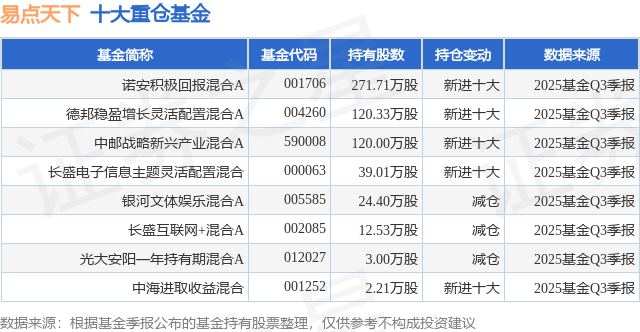 重仓易点天下的公募基金请见下表: