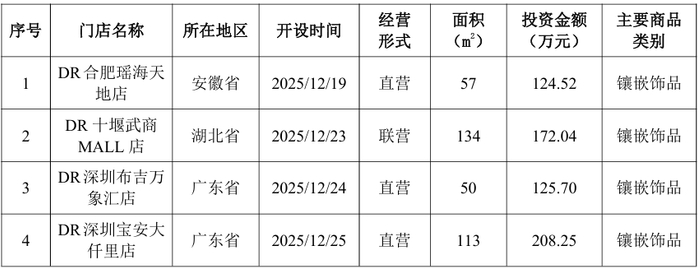迪阿股份:2025年12月新增4家自营门店
