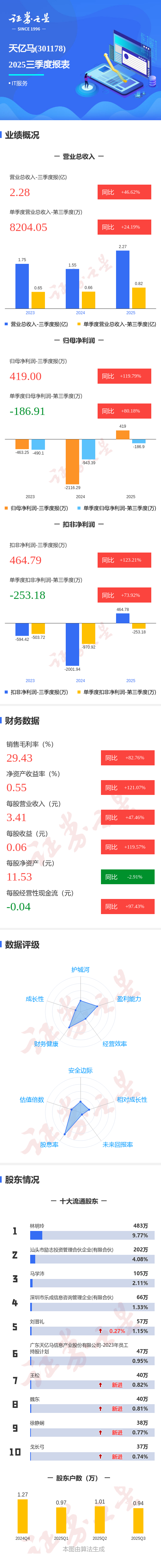 图解天亿马三季报:第三季度单季净利润同比增长80.19%
