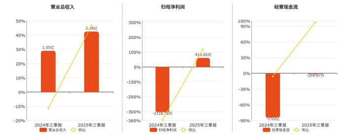 公司营业总收入为2.28亿元,在已披露的同业公司中排名第56。归母净利润为419.00万元,在已披露的同业公司中排名第41。经营活动现金净流入为-259.87万元。