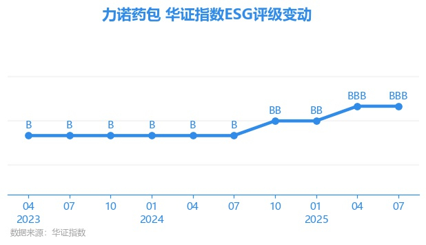 日前,华证指数公布了新一期(2025年7月31日)的ESG评级结果,力诺药包(301188.SZ)获得BBB评级(华证指数评级为C起至AAA九档,C为最低档,AAA为其最高一级评级/AA为其第二档),上一期(2025年4月30日)ESG评级为BBB。本期ESG评级在62家容器与包装行业A股上市公司中排名第6(上一期排名第8)。