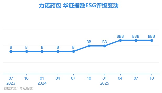 日前,华证指数公布了新一期(2025年10月31日)的ESG评级结果,力诺药包(301188.SZ)获得BBB评级(华证指数评级为C起至AAA九档,C为最低档,AAA为其最高一级评级/AA为其第二档),上一期(2025年7月31日)ESG评级为BBB。本期ESG评级在65家容器与包装行业A股上市公司中排名第8(上一期排名第6)。