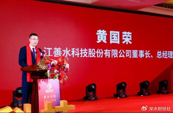 2021年12月24日,善水科技在深交所创业板成功敲钟,上市首日股价最高冲至54.88元/股,按当日收盘价计算,黄国荣、吴新艳夫妇的股权市值合计超25亿元,并成为江西小城彭泽县首富。