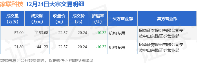 证券之星消息,12月24日家联科技发生大宗交易,交易数据如下: