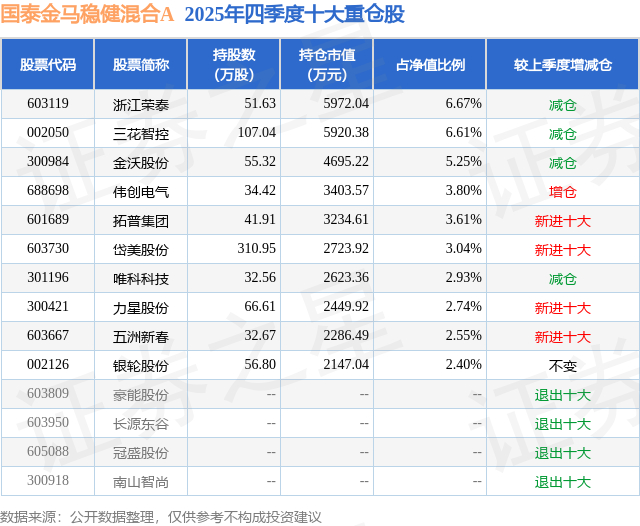 根据2025基金年报公募基金重仓股数据,重仓该股的公募基金共14家,其中持有数量最多的公募基金为国泰基金的国泰金马稳健混合A。国泰金马稳健混合A目前规模为8.84亿元,最新净值1.2305(2月11日),较上一交易日下跌1.37%,近一年上涨34.9%。该公募基金现任基金经理为谢泓材。谢泓材在任的基金产品包括:国泰共赢未来混合发起A,管理时间为2026年1月26日至今,期间收益率为nan%。