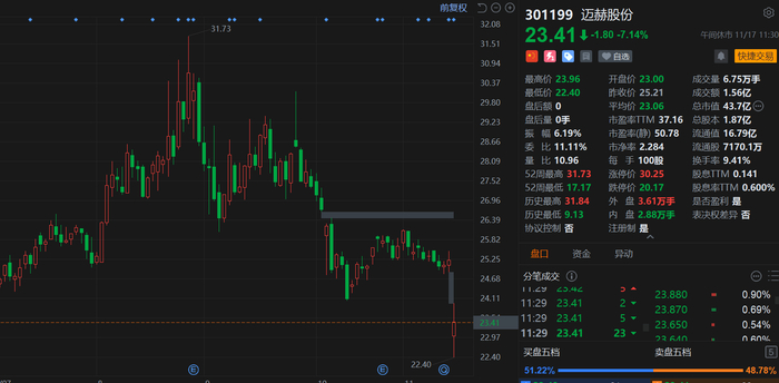 A股异动丨迈赫股份跌超7% 董事长被立案调查、留置