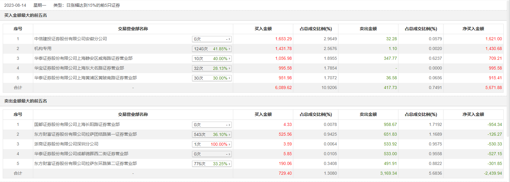 具体来看,机构买入1431.78万元,卖出1.1万元,合计净买入1430.68万元。此外,中信建投证券安徽分公司、华泰证券上海静安区威海路证券营业部分别买入1653.29万元、1056.98万元;国都证券上海长阳路证券营业部、东方财富证券拉萨团结路第一证券营业部分别卖出958.67万元、651.83万元。