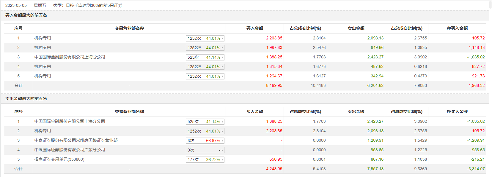 具体来看,机构买入6781.69万元,卖出3778.35万元,合计净买入3003.34万元。此外,中国国际金融上海分公司、中泰证券常州惠国路证券营业部分别卖出2423.27万元、1209.91万元;中国国际金融上海分公司、招商证券交易单元(353800)分别买入1388.25万元、650.95万元。