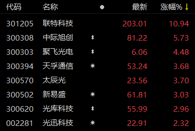 上证报中国证券网讯 5月17日上午交易时段,CPO板块低开高走。10时20分,联特科技大涨超10%,盘中创历史新高。中际旭创涨超5%,聚飞光电、天孚通信等跟涨。