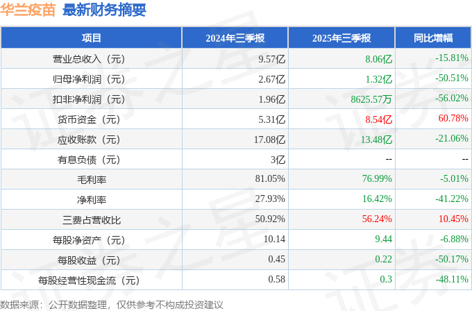 华兰疫苗(301207)2025年三季报简析:净利润同比下降50.51%