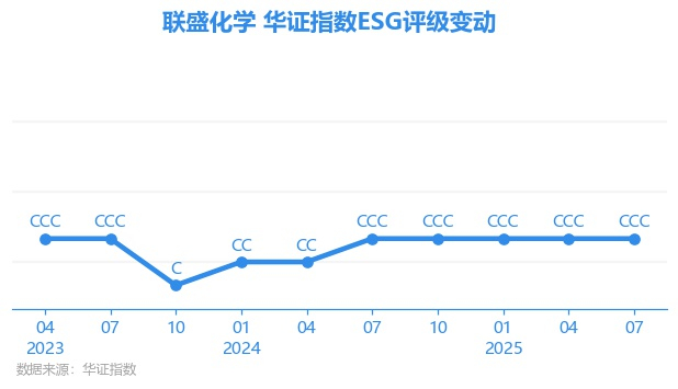 日前,华证指数公布了新一期(2025年7月31日)的ESG评级结果,联盛化学(301212.SZ)获得CCC评级(华证指数评级为C起至AAA九档,C为最低档,AAA为其最高一级评级/AA为其第二档),上一期(2025年4月30日)ESG评级为CCC。本期ESG评级在462家化学制品行业A股上市公司中排名第310(上一期排名第325)。