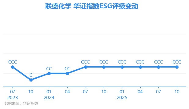 日前,华证指数公布了新一期(2025年10月31日)的ESG评级结果,联盛化学(301212.SZ)获得CCC评级(华证指数评级为C起至AAA九档,C为最低档,AAA为其最高一级评级/AA为其第二档),上一期(2025年7月31日)ESG评级为CCC。本期ESG评级在494家化学制品行业A股上市公司中排名第297(上一期排名第310)。