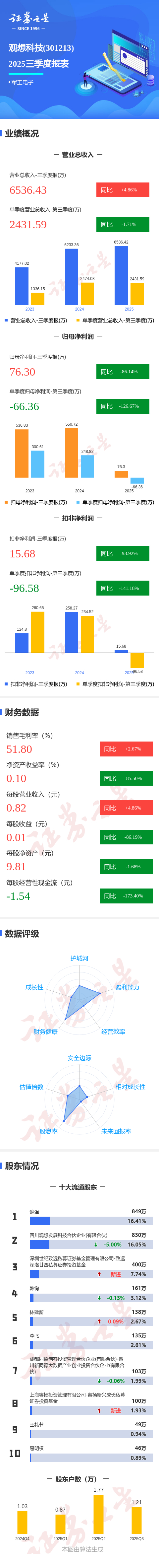 图解观想科技三季报:第三季度单季净利润同比下降126.67%