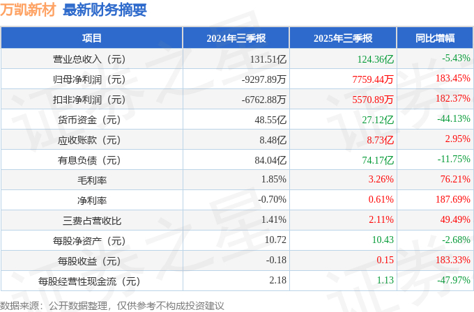 万凯新材(301216)2025年三季报简析:净利润同比增长183.45%,盈利能力上升